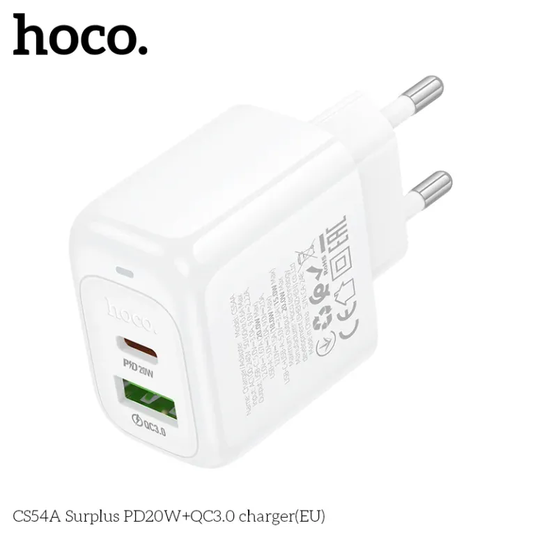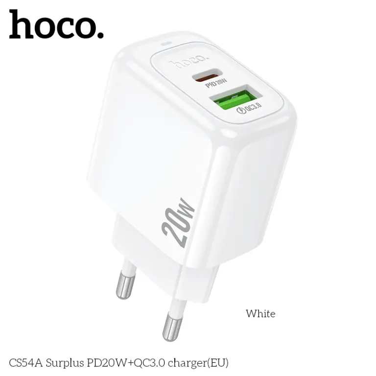 Hoco Surplus CS54A là giải pháp sạc hiện đại, kết hợp giữa sự nhỏ gọn và sức mạnh công suất 20W. Với thiết kế hai cổng sạc nhanh chuẩn PD và QC, sản phẩm này đáp ứng hoàn hảo nhu cầu nạp năng lượng cho cả iPhone và các dòng Android cùng lúc, là món phụ kiện “chủ lực” cho mọi cửa hàng điện thoại.