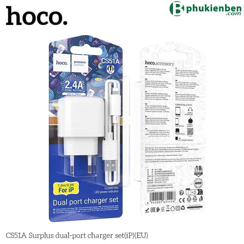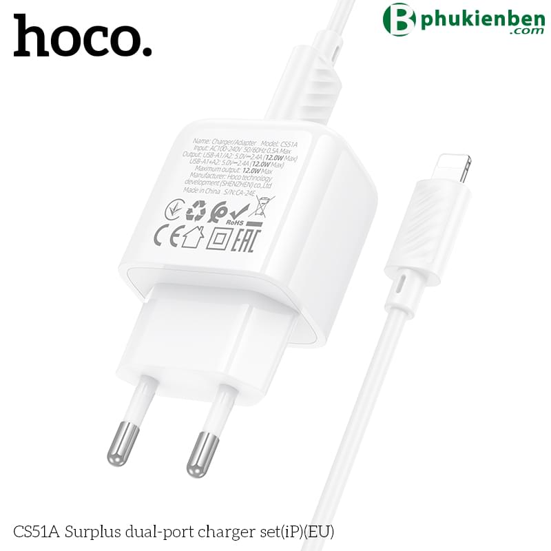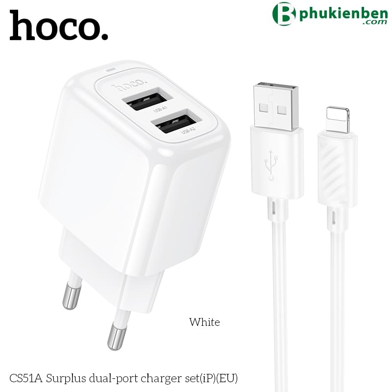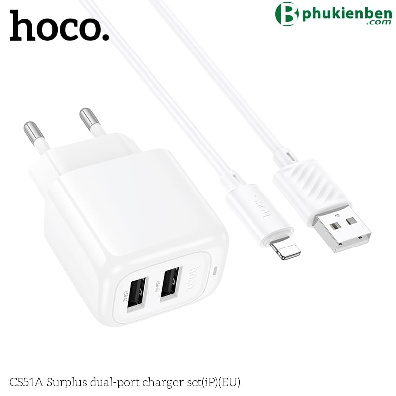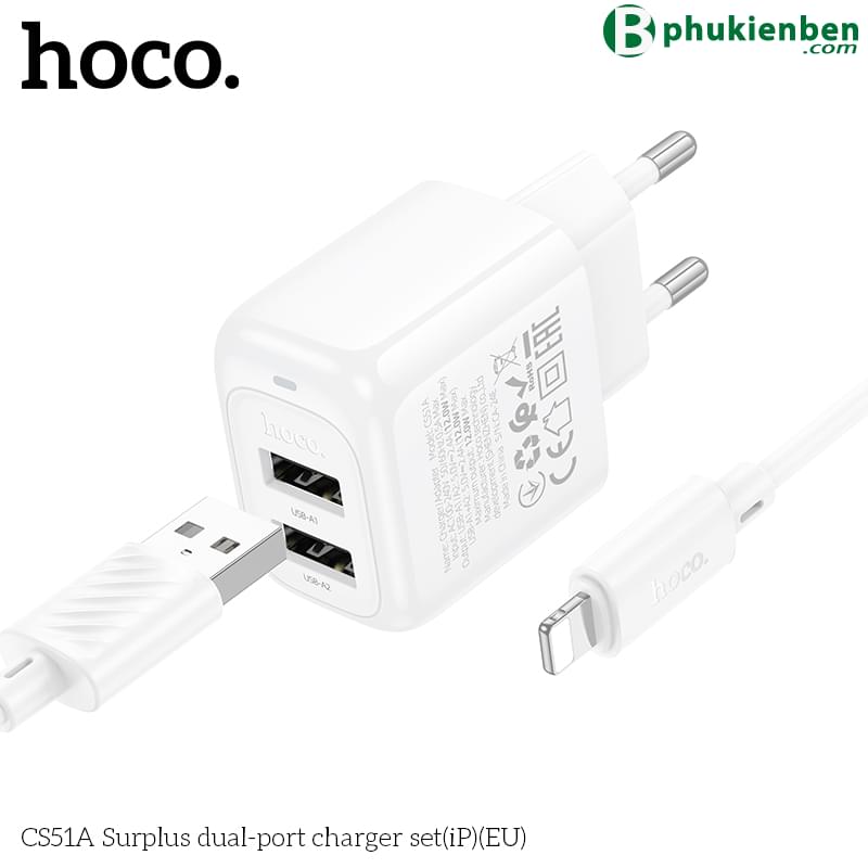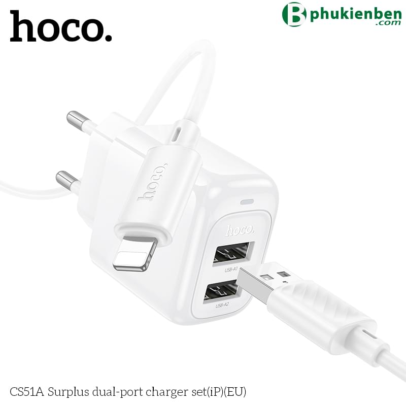 Bộ sạc hai cổng Hoco Surplus CS51A (iP) (EU)