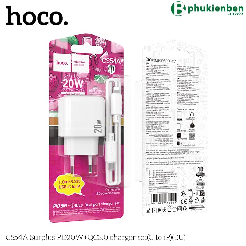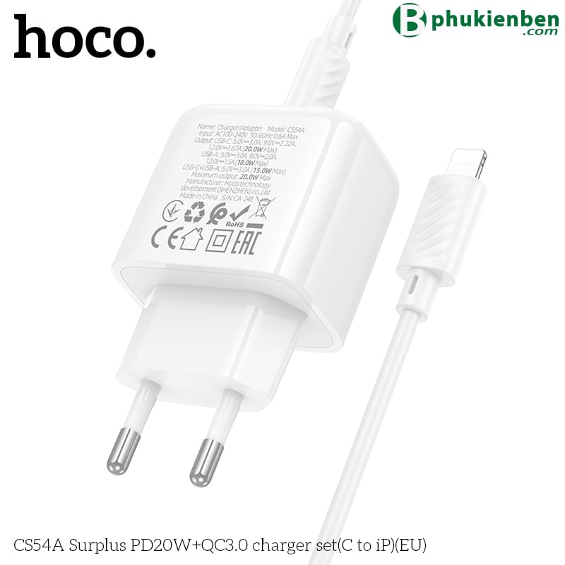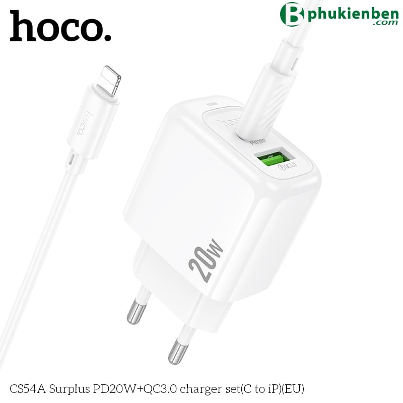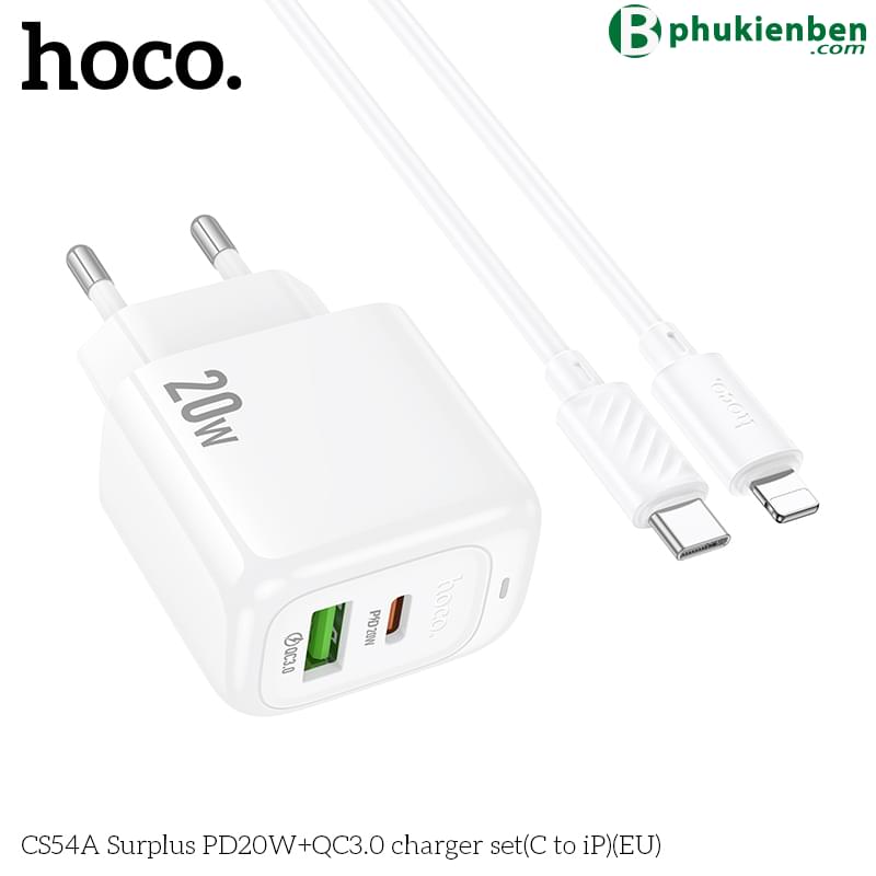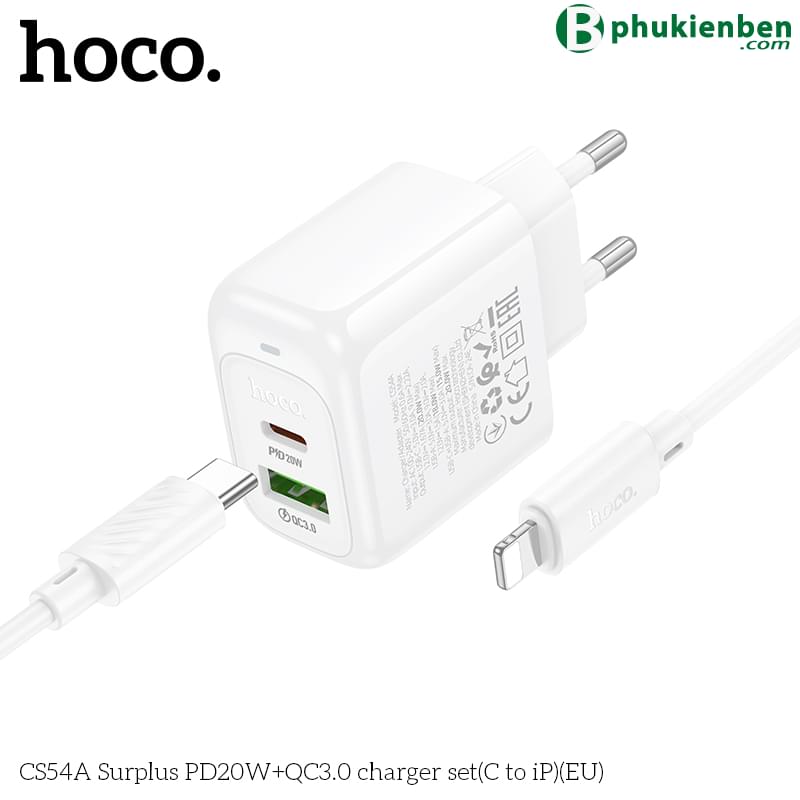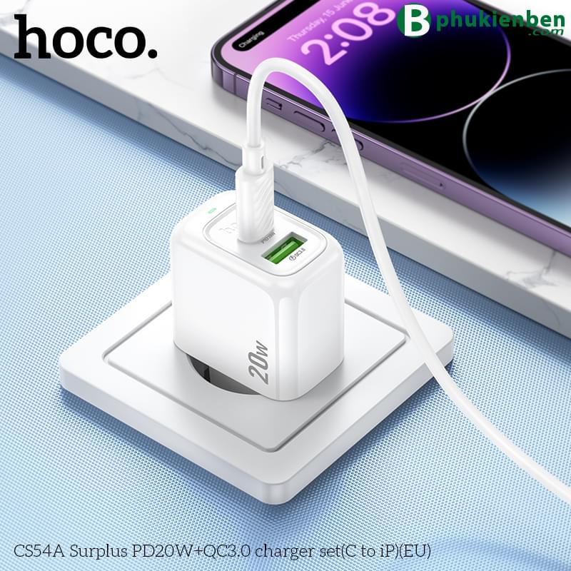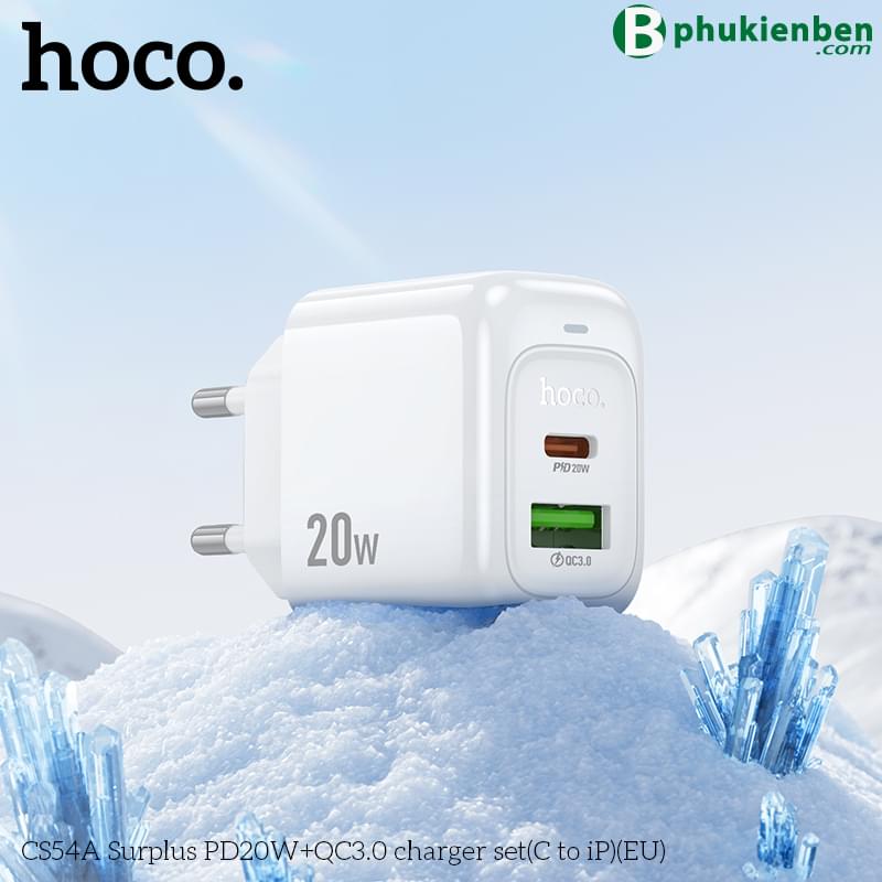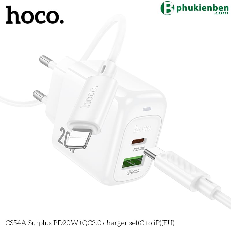 Bộ sạc Hoco Surplus PD20W+QC3.0 CS54A (C đến iP) (EU)