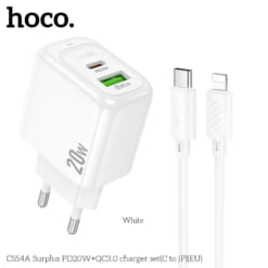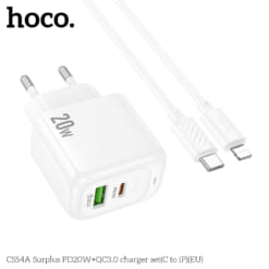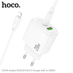 Bộ sạc Hoco Surplus PD20W+QC3.0 CS54A (C đến iP) (EU)