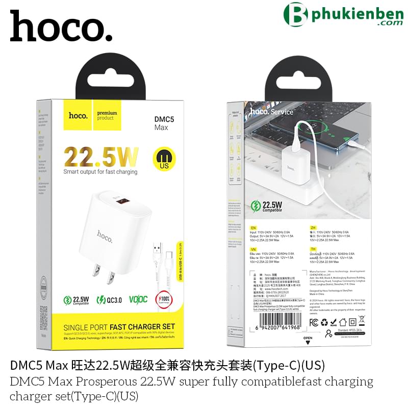 Bộ sạc nhanh Hoco DMC5 Max 22.5W (Type C)