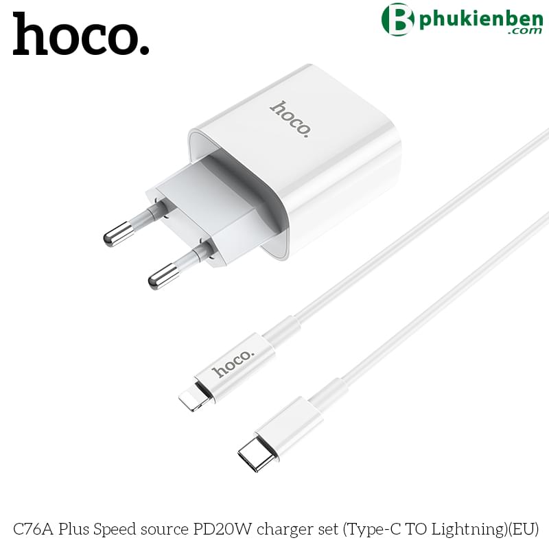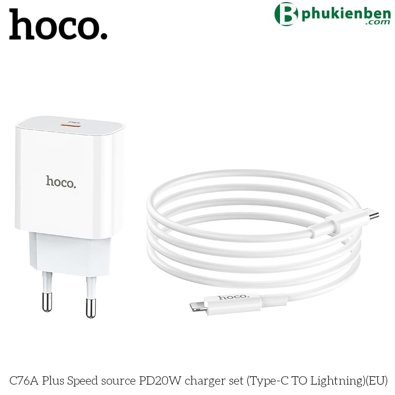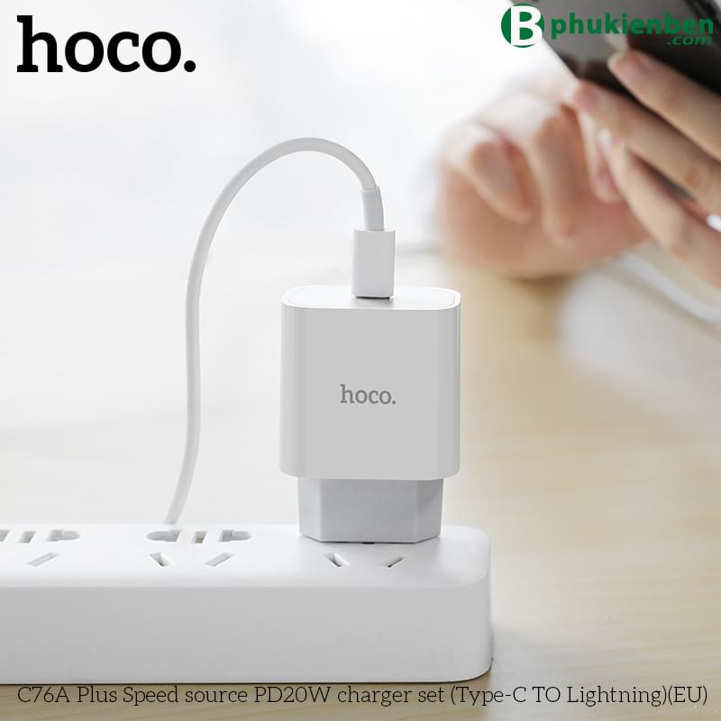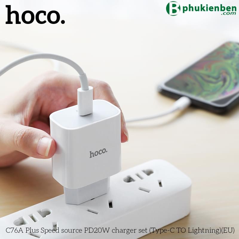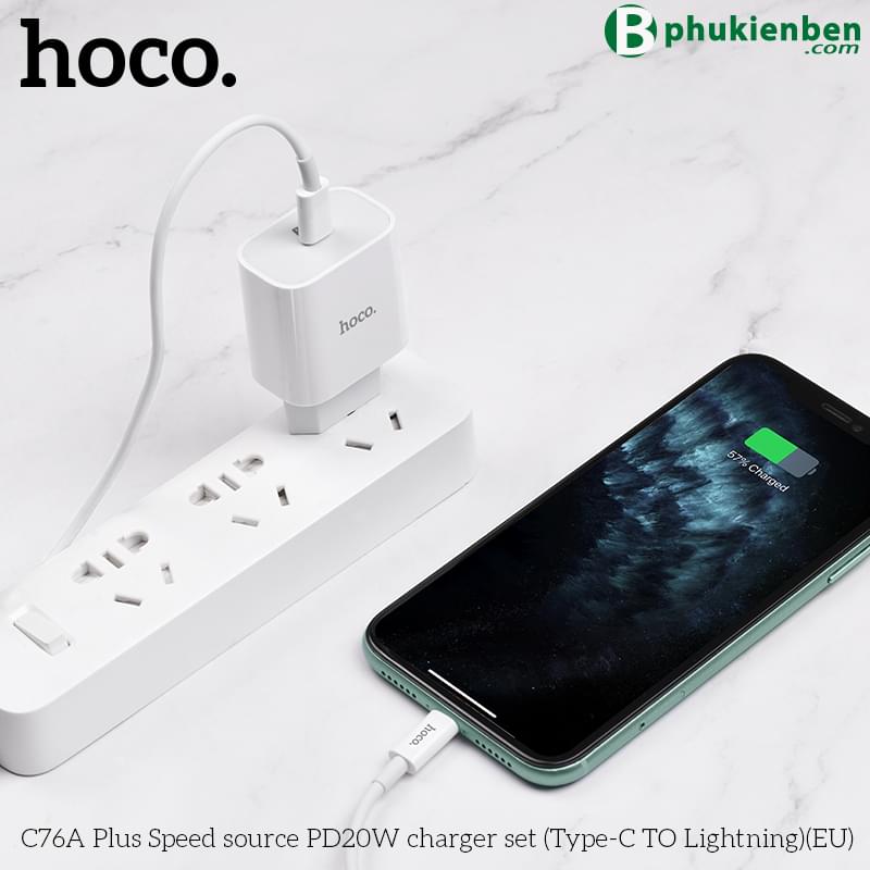 Bộ Sạc Nhanh Hoco PD 20W Cho iPhone, iPad Hoco C76A Plus Type-C To Lightning