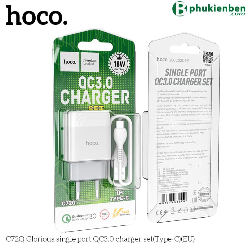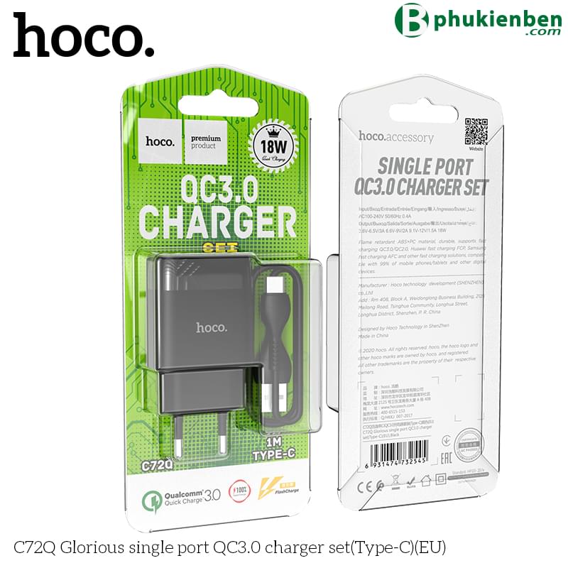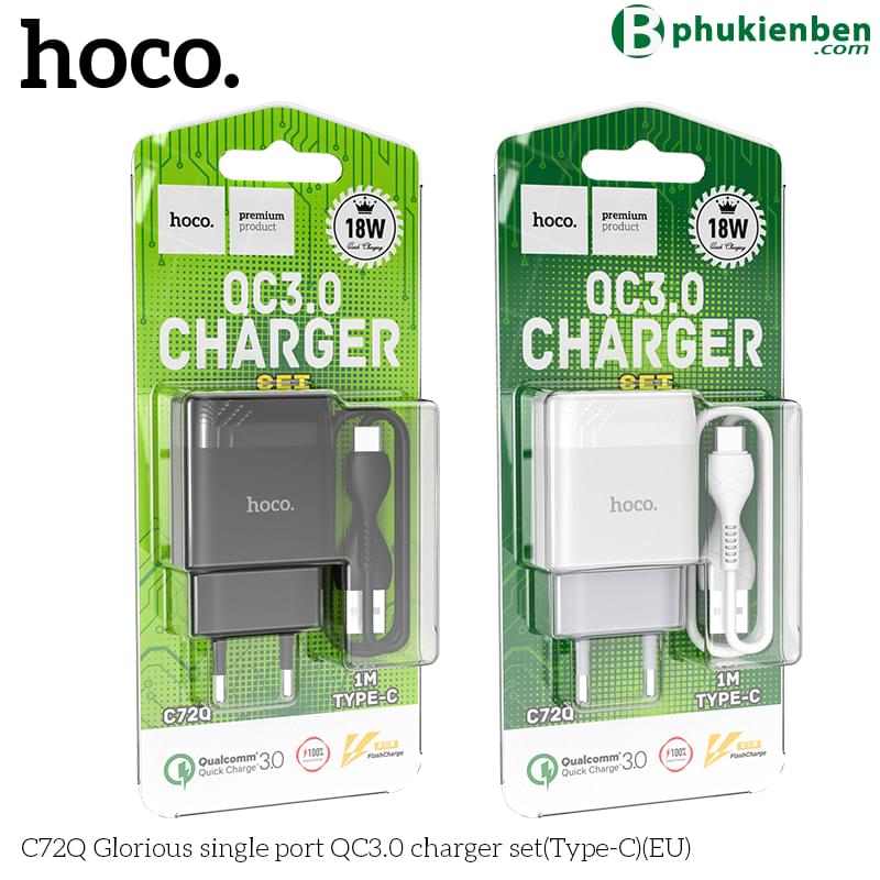 Bộ sạc nhanh Hoco QC 3.0 18W C72Q Type C