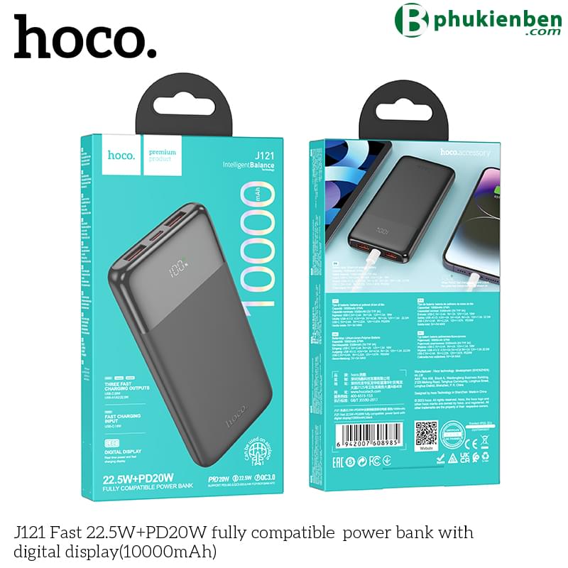 Pin Sạc Dự Phòng Hoco J121 Fast 22.5W+PD20W Có Màn Hình Kỹ Thuật Số (10000MAH)