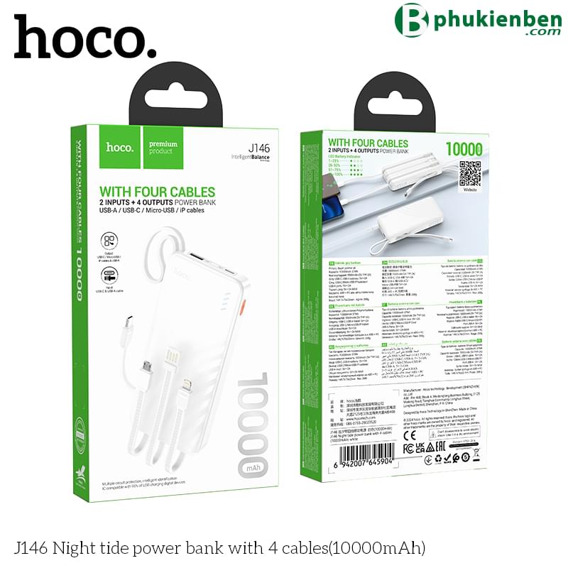 Sạc dự phòng Hoco J146 kèm 4 dây cáp (10000mAh)